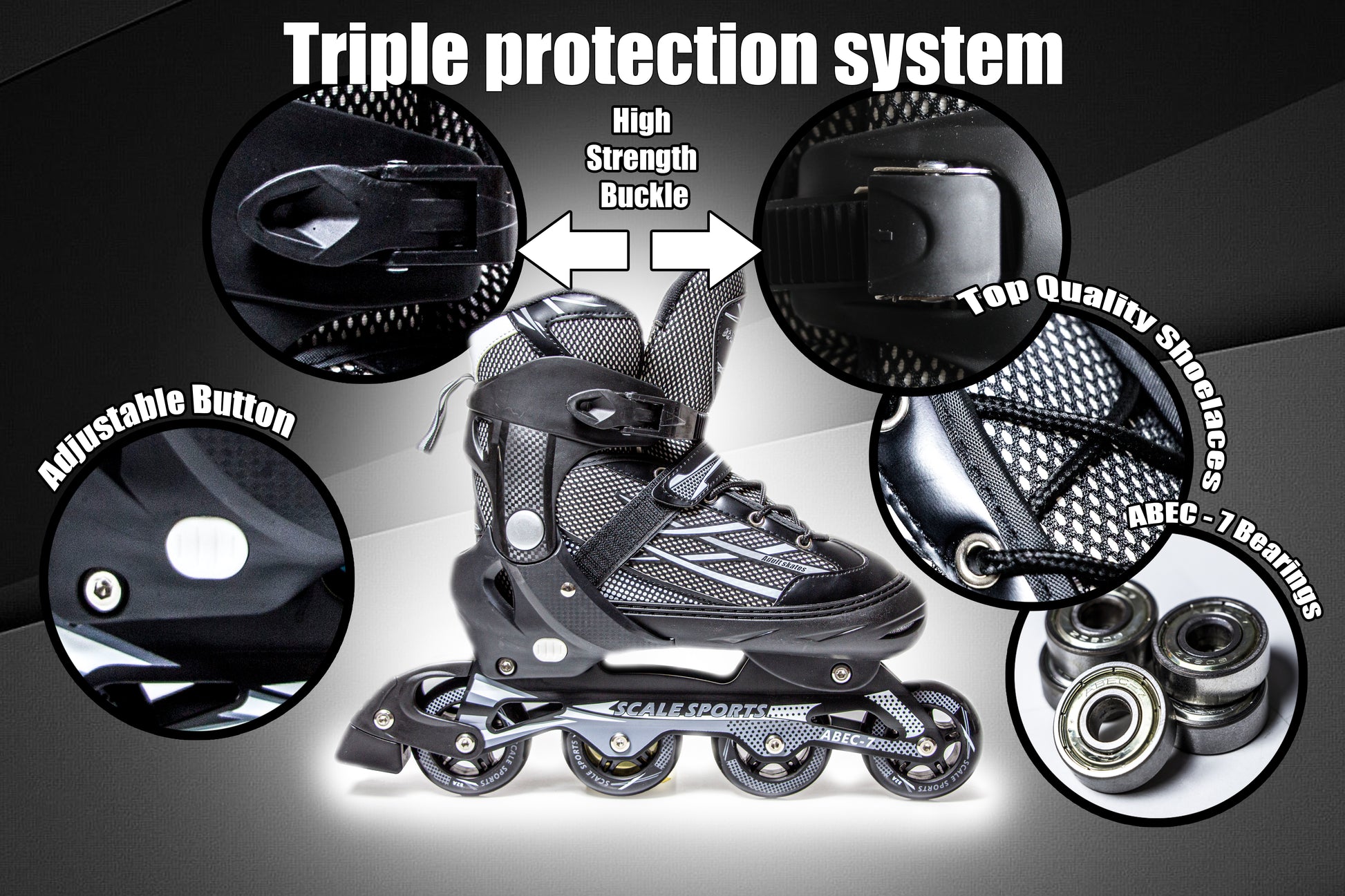 - Triple Protection System: Includes buckle, strap and lace to keep your feet secure and supported while skating.