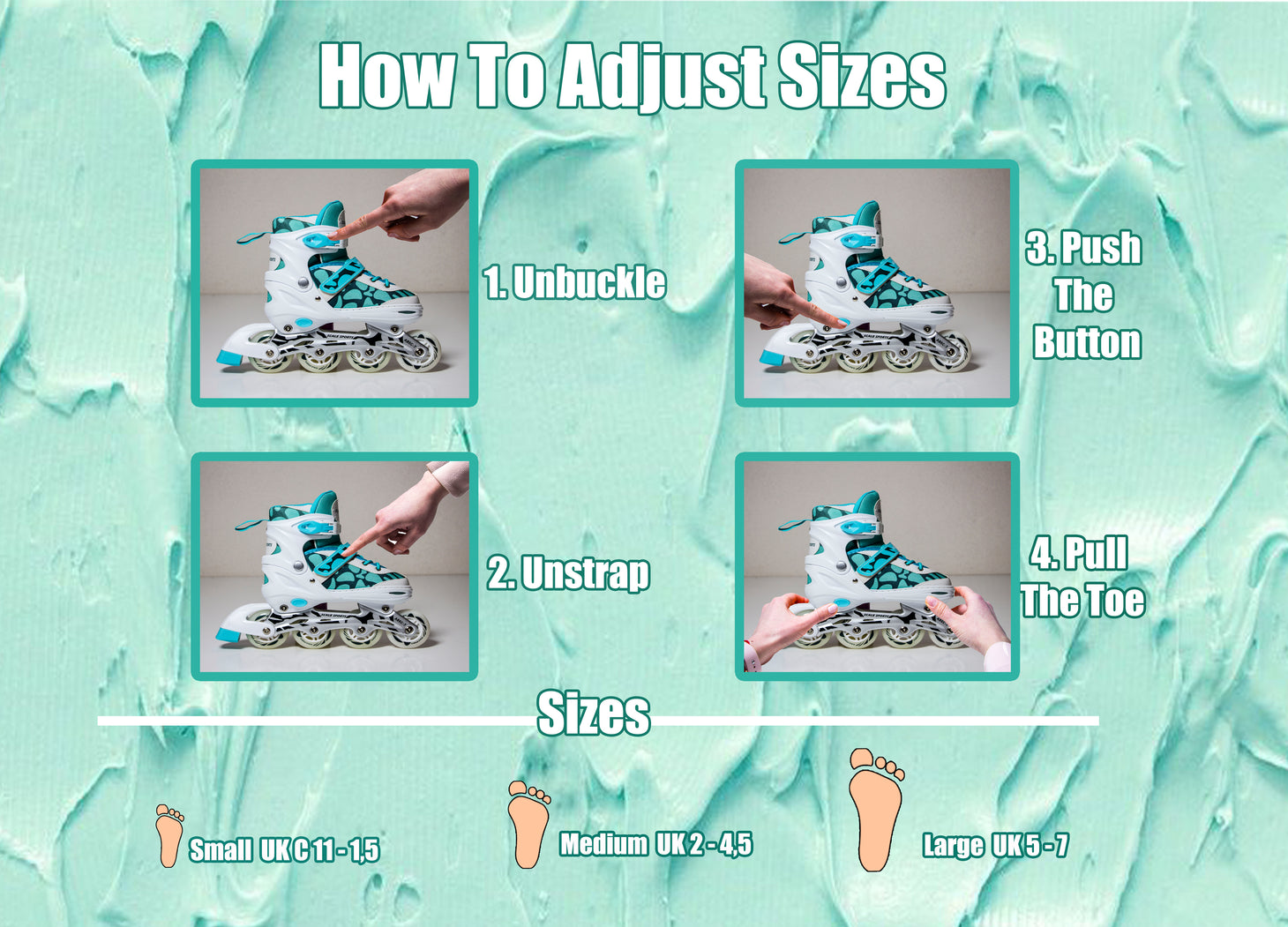 Scale Sports 601B inline skates are designed to grow with your child. Adjust the boot size in seconds – no tools needed: