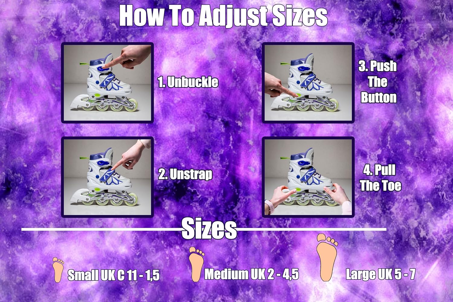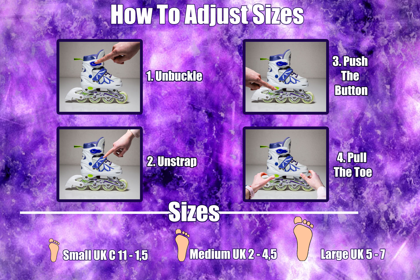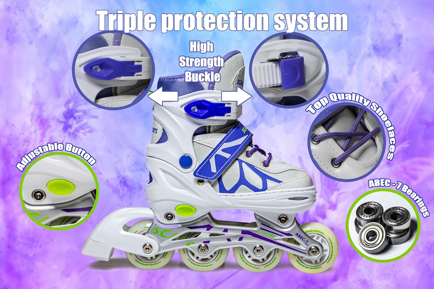 Purple Adjustable Inline Skates – Scale Sports 601B | UK C11–7 (EU 30–41