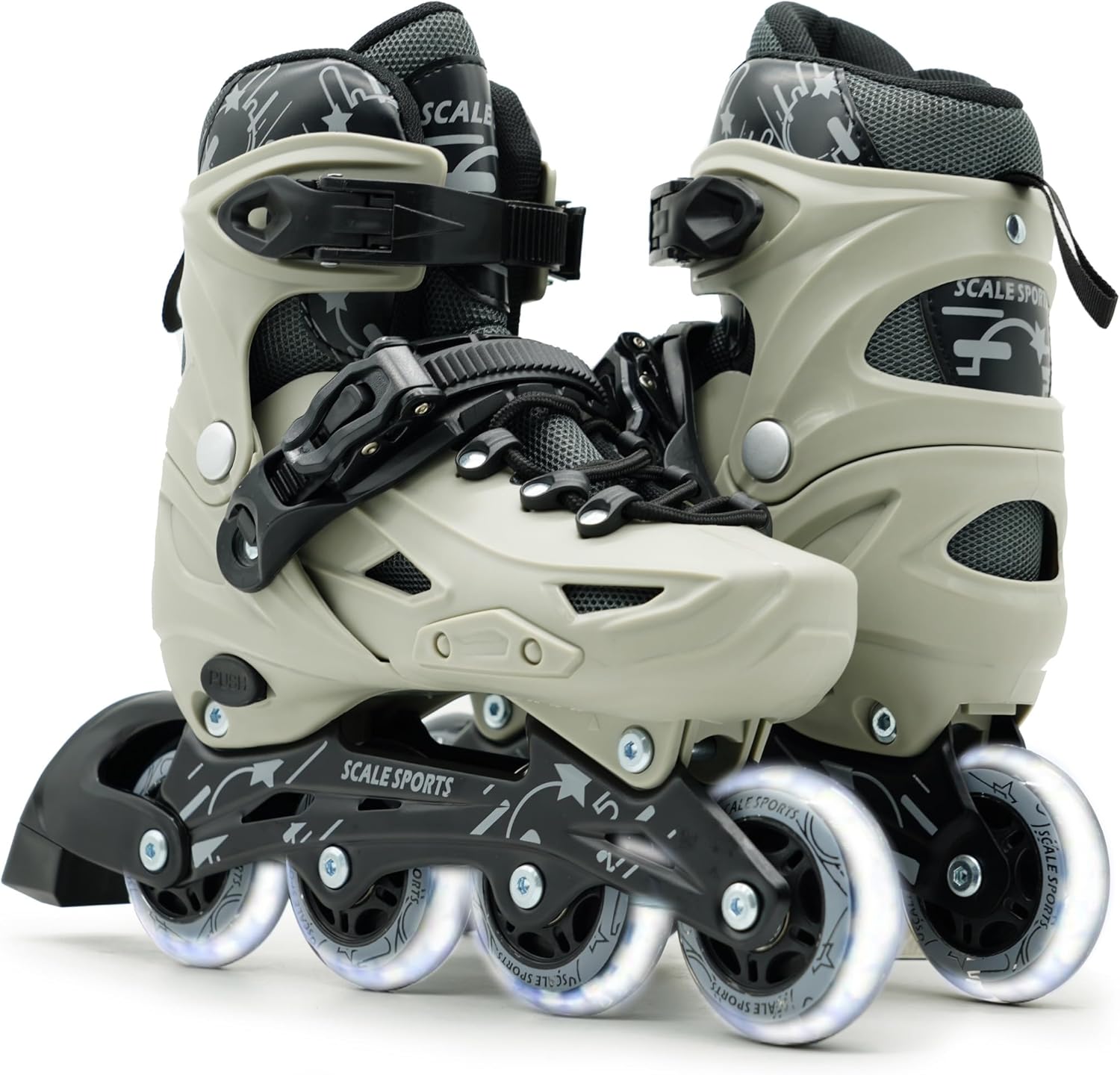 Scale Sports Adjustable Roller Skates with Light-Up Wheels | Gray