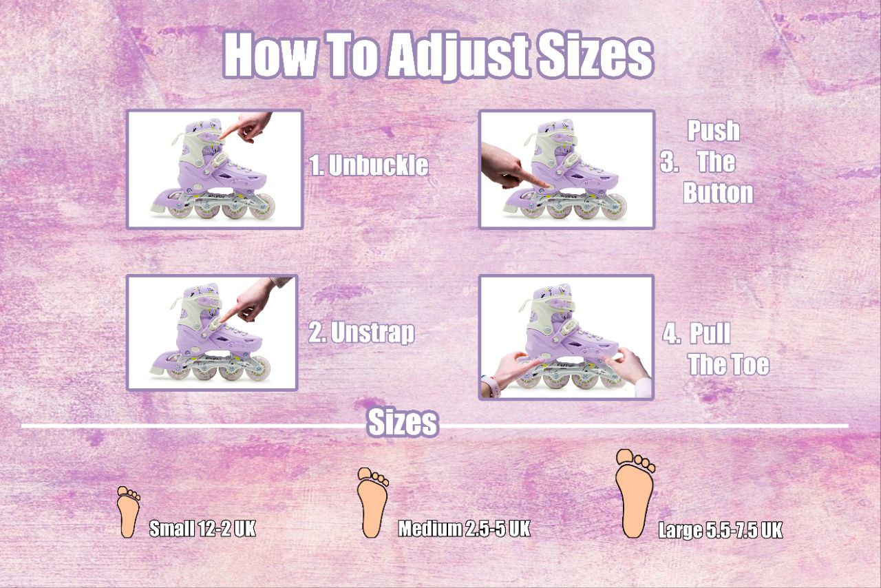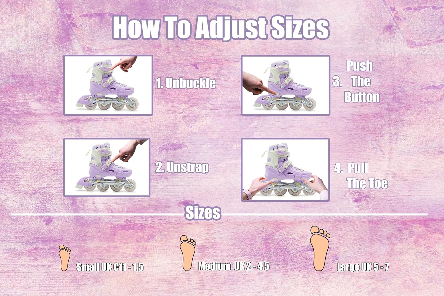 - 3 Adjustable Sizes:Small (UK C11–1.5 / EU 30–33), Medium (UK 2–4.5 / EU 34–37), Large (UK 5–7 / EU 38–41). These skates grow with your child and provide the perfect fit at every stage.