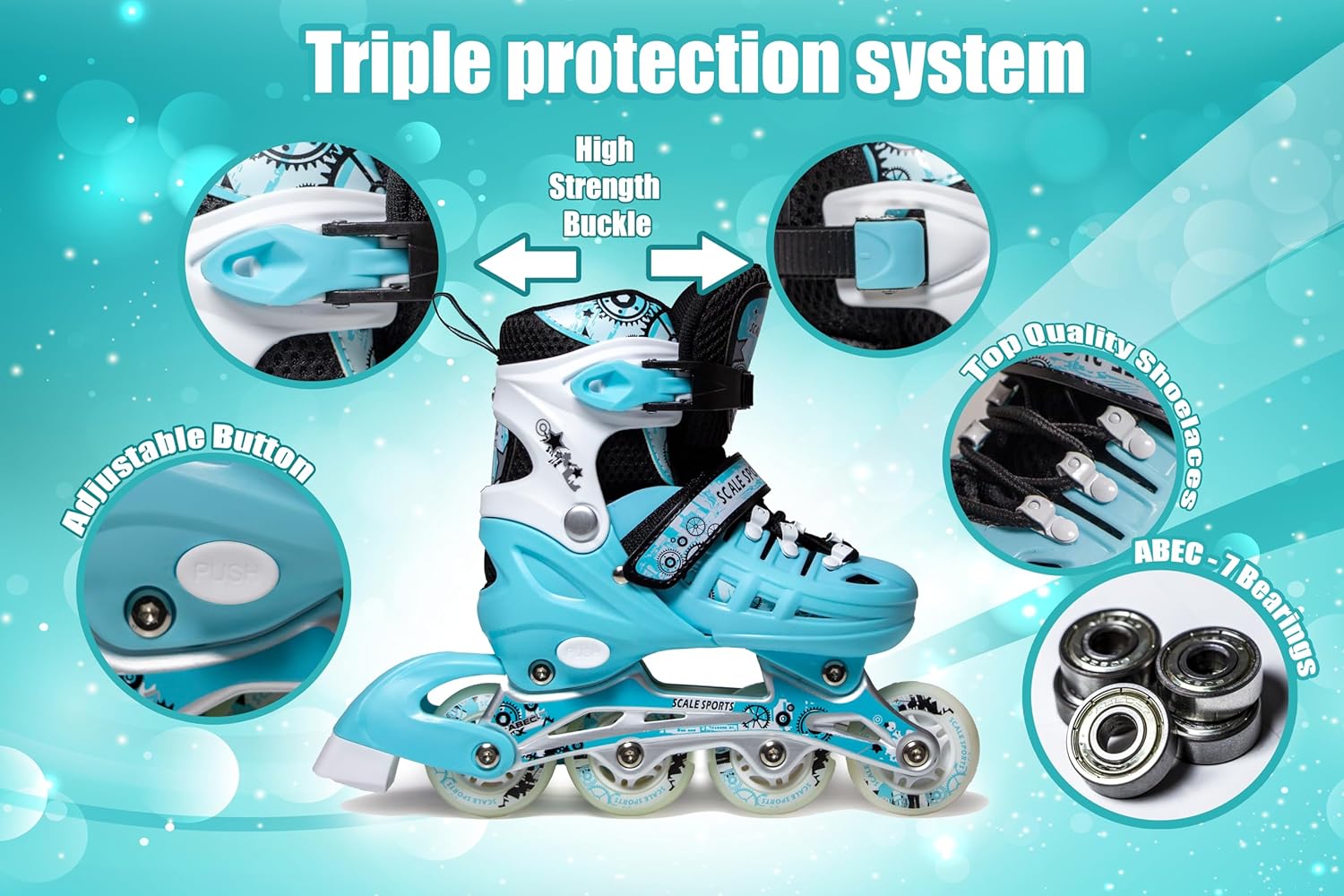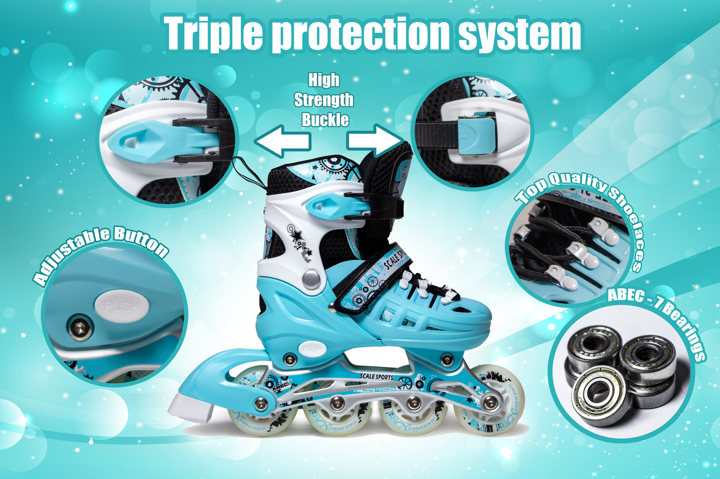Triple Safety System for Confident SkatingDesigned for kids and teens, Scale Sports inline skates offer: