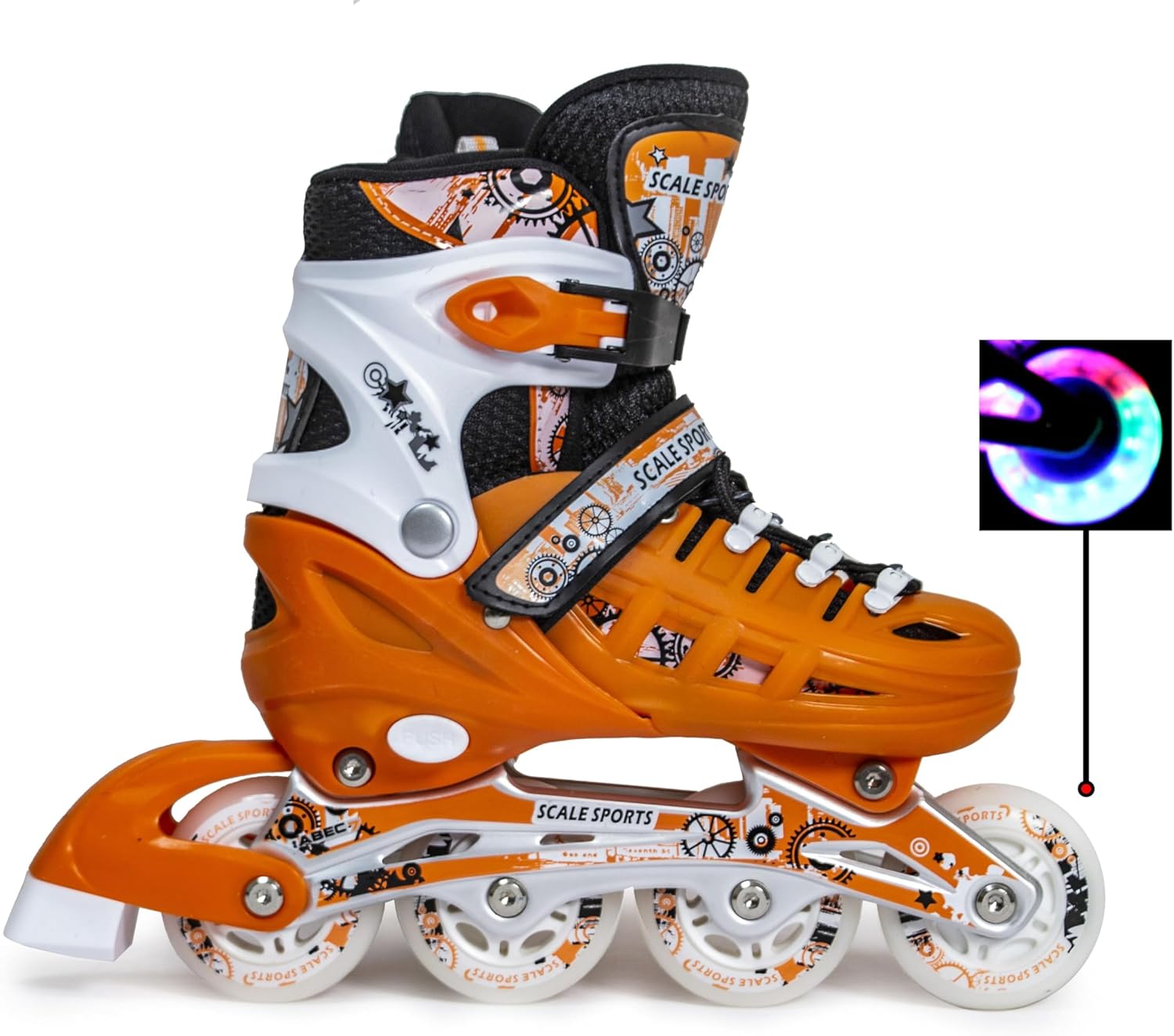 Scale Sports - Adjustuble Roller Skates with light up wheels | Orange