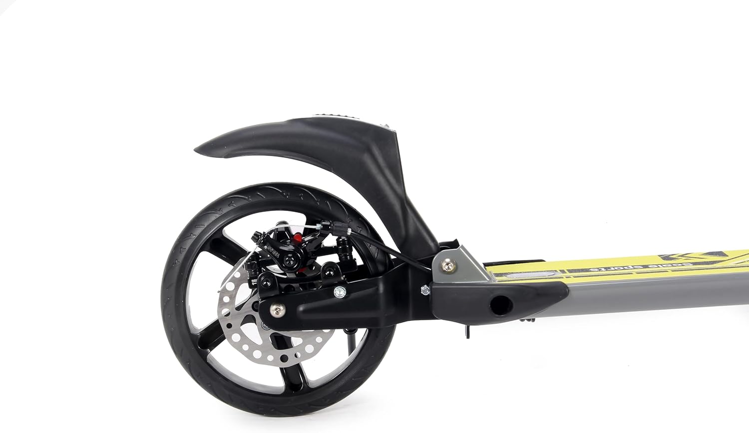 Thanks to the large wheel diameter of 200 mm, the scooter is ideal for quickly covering long distances. Polyurethane wheels are silent when driving. Characterized by a long service life. They are resistant to mechanical shock and abrasion; resistant to wear and temperature changes. The presence of double a shock absorber minimizes vibrations. The foot platform is covered with a special layer that prevents shoes from slipping.