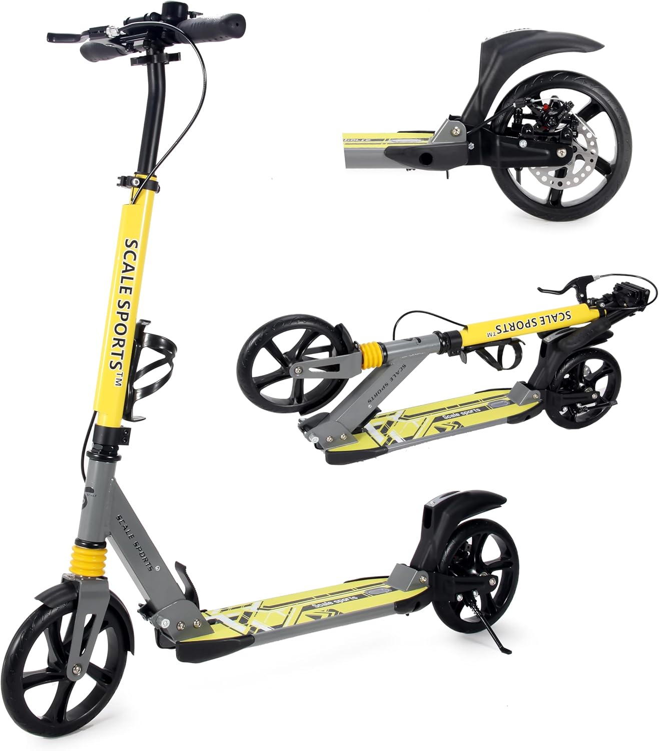 Scale Sports -Two Wheeled Folding 3 size Adjustable Kick Scooter for Kids | Yellow